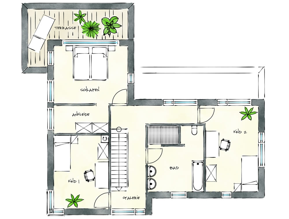 Dieses Hauskonzept empfehlen wir ab einer Größe von 150 m² Wohnfläche.